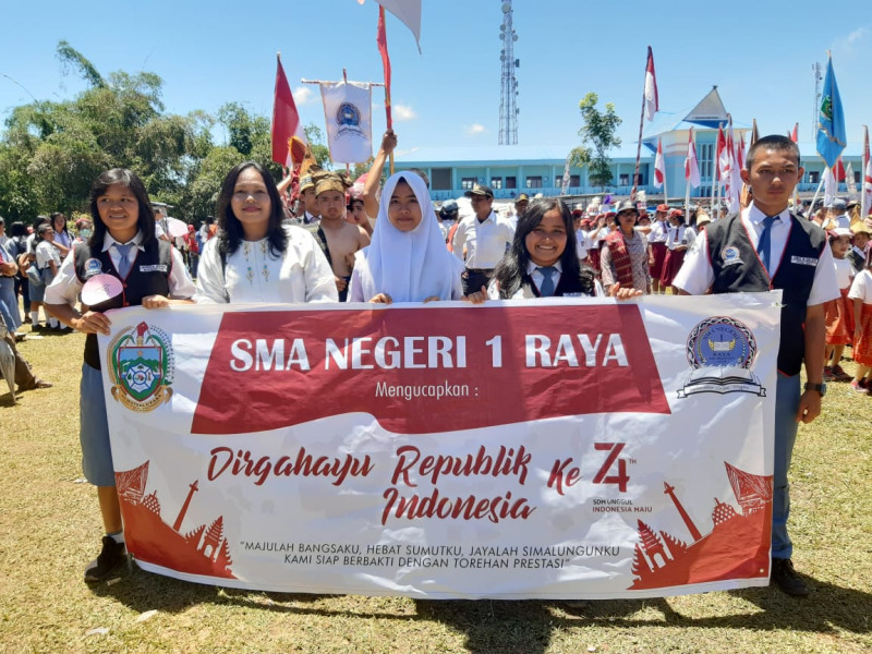 Dalam rangka memperingati HUT RI ke 74, pengurus OSIS dan MPK SMA Negeri 1 Raya mengadakan berbagai cabang pertandingan antar kelas. Kegiatan tersebut diadakan 2 hari sebelum tanggal 17 Agustus 2019. Adapun cabang pertandingannya adalah Balap Karung Pakai Helm, Mengiring Bola Memakai Terong, Estafet Baju, Lomba Memindahkan Air Menggunakan Gelas Plastik, Lomba Makan Kerupuk, Bola Bisu, Kebersihan Kelas, Lomba Foto Kelas, dan Lomba Vocal Solo.